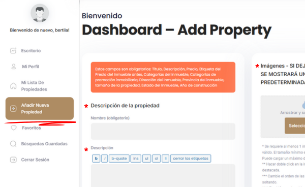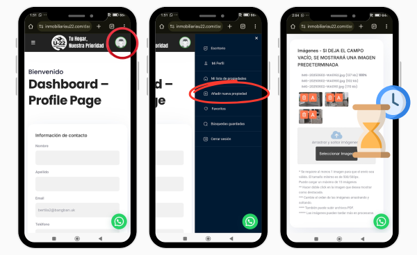 Al agregar las fotos de tu propiedad a la publicación deberas esperar a que se complete la carga a la pagina, antes de presionar en añadir propiedad.