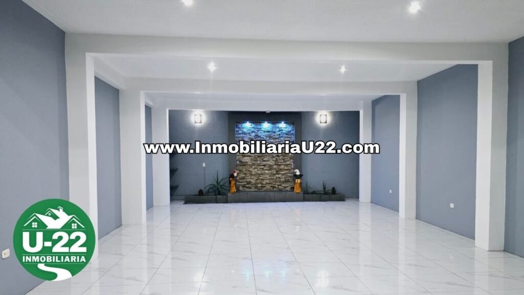 En el interior se aprecia un ambiente extenso, bien iluminado y con acabado cerámico de lujo, ideal para sala, área social o comedor principal.